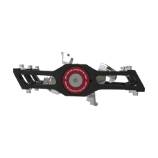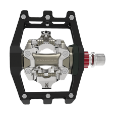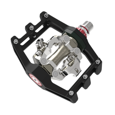 A pedal featuring a pop-up binding for easy cleat engagement. This pedal is built on a rigid, a CNC-machined aluminum frame, anti-slip grip pins, smooth running mechanism consisting of a Cr-Mo axle and a slimline dual bearing system.