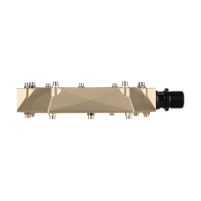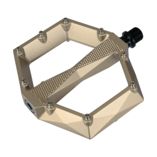 A pedal featuring a strong aluminum body with a machined Cr-Mo axle and anti-slip grip pins