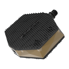 A pedal featuring a strong aluminum body with a machined Cr-Mo axle and an anti-slip nylon surface.
